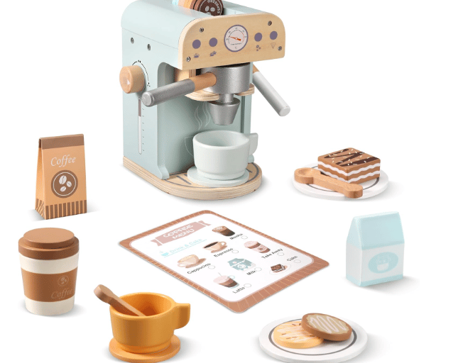 This is the playset I know Ilah is going to flip over. She already loves pretending to make “coffee,” and this little wooden machine is going to make her feel like a real barista. It’s adorable, Montessori-friendly, and sparks endless creative play.